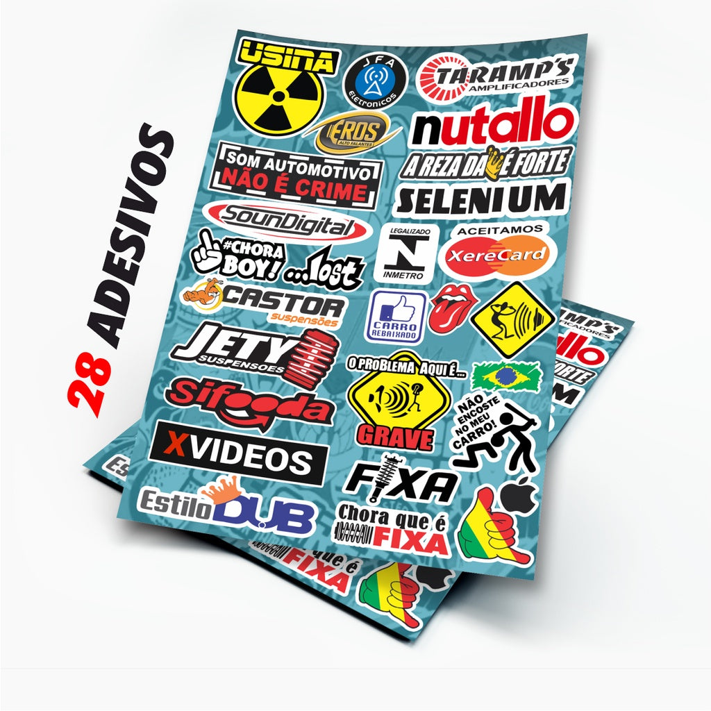 Cartela Adesivo com 28 Adesivos Carro, Som Automotivo e Rebaixado